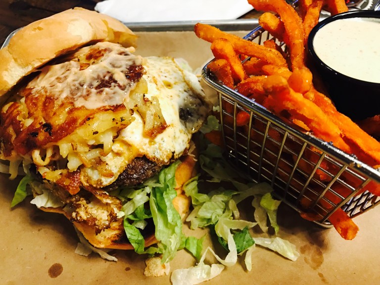 Martha got The Hangover. Recommended by the server as well as being one of the two options she was debating – she, too, dove in with high expectations. The burger and ingredients were good enough – fried egg, cheesy hashbrowns, American cheese and Tap House sauce. But Martha’s bun also crumbled around the burger and added more work. And since we had to finish our appetizer before shifting to our main course (already on the table) – she also felt the sweet potato fries and burger were cooling down.
