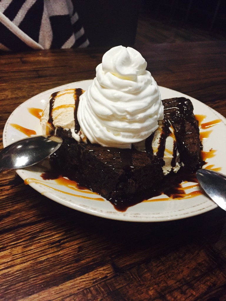 Fully prepared to find dessert elsewhere, our server asked if we’d be interested in fried cheesecake bites or brownies a la mode. Sticking to our rule – if they serve dessert, we’ll get it – we went with the brownies. Points for honesty, our server told us the brownies would take a bit to thaw from the freezer before they could make it. We allowed it, but made sure not to get our hopes up. With a pretty presentation of caramel and chocolate drizzles and swirls, the dessert rang as flat as the rest of the meal. It tried. But it didn’t succeed.