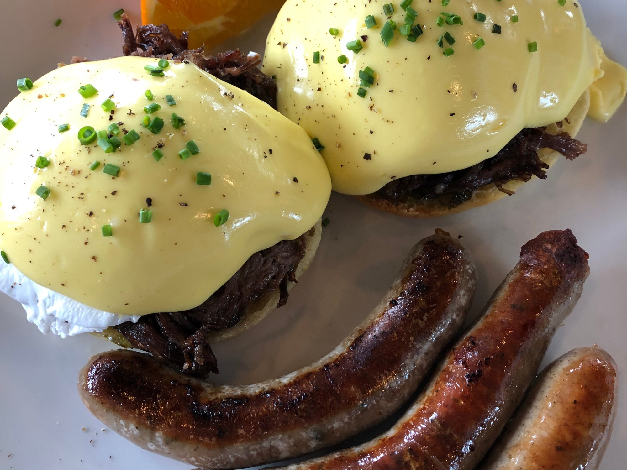 Completely dizzy with all the delicious sounding options, and frozen with the threat of breakfast FOMO, Martha ordered the Eggs Benny because somewhere in the recesses of her mind, she swears a friend of hers had raved about the SCBC’s take. A warm plate of braised short rib, jalapeño jam, poached eggs, hollandaise and toasty English muffins landed on the table and Martha all but blacked out in the pure splendor of all the flavors. She added a side of sausage links at the server’s recommendation and was happy she did. After sharing the smallest of bites so that Jac understood herself, she devoured and loved every last morsel.