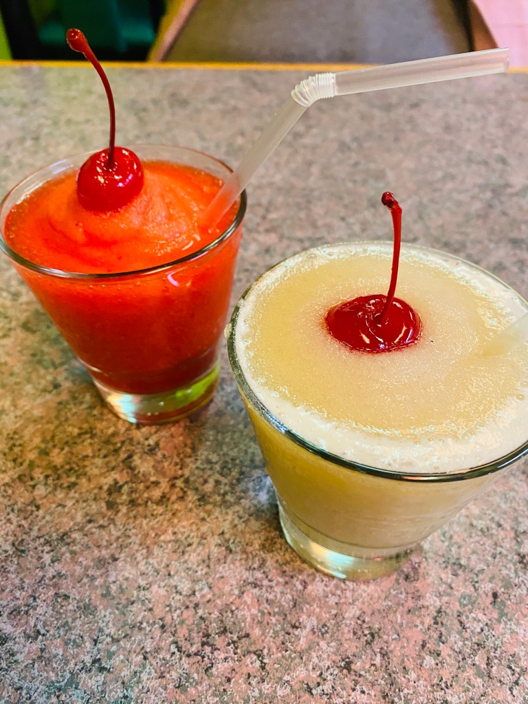 Debating between the rum runners or daiquiris, the slushy fruity rummy daiquiris won us over. Martha slurped down her strawberry and I sipped my pineapple. We only wished they were bigger!