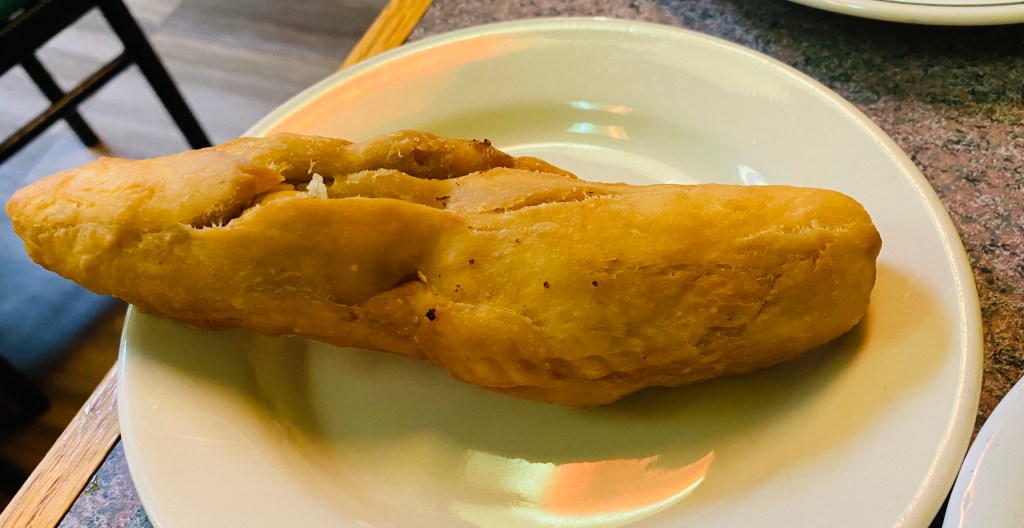 Maybe Martha’s favorite 6 bites of the whole evening – we originally ordered the much touted Beef Patty. The server returned a few minutes later asking if chicken would be okay as it was all they had left in the warmer. We said that was fine and it was brought over right away. Plain looking but delicious tasting – these are a must-try item. Whatever they have available – take it, taste it, try it. Warm, flaky, and flavorful – you’ll be glad you did.
