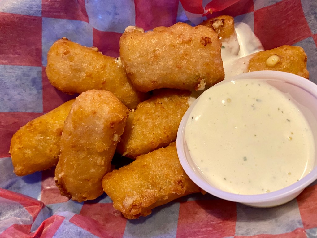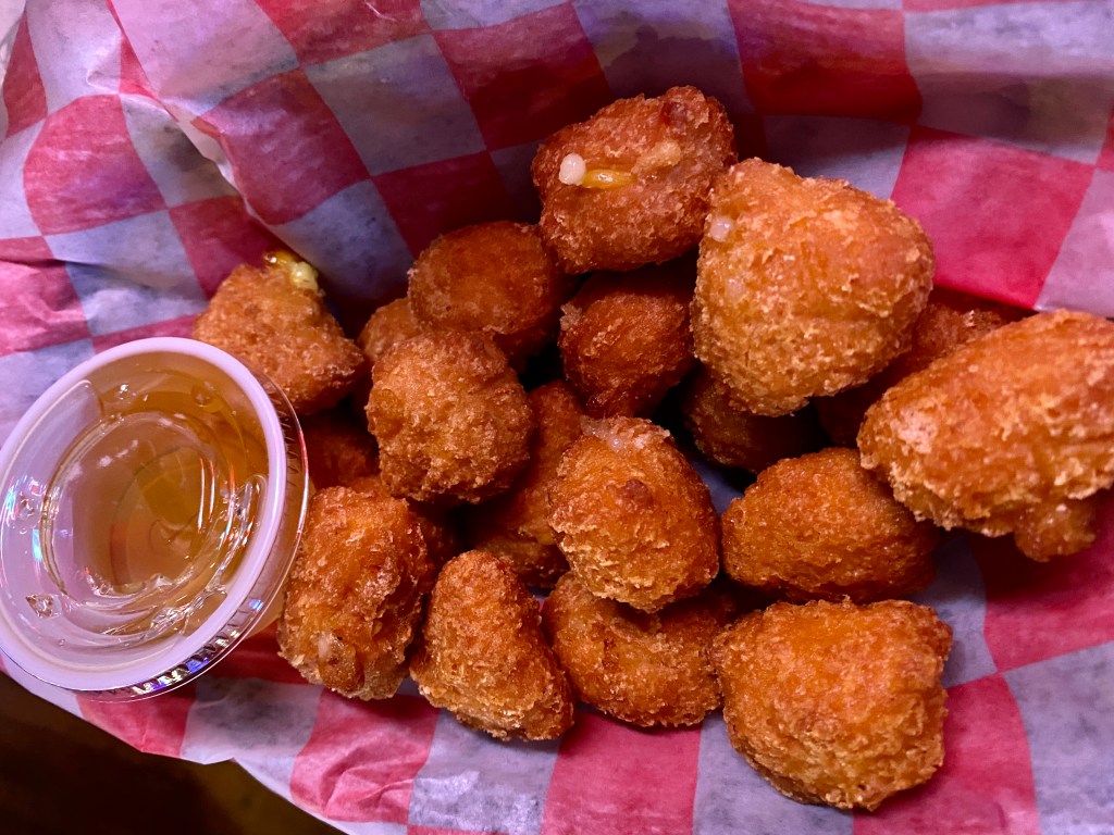 Along with Chips and Queso, we ordered the Corn Nuggets – a choice our server commended. These creamed corn-filled nuggets came out piping hot with a cup of honey. Comparing them to a version she’s had at the Good Life Bar, Martha thought even though they were worth ordering, they weren’t as good as GLB’s. With nothing to compare them to, I thought they were tasty and well-paired with honey as a dipping sauce.