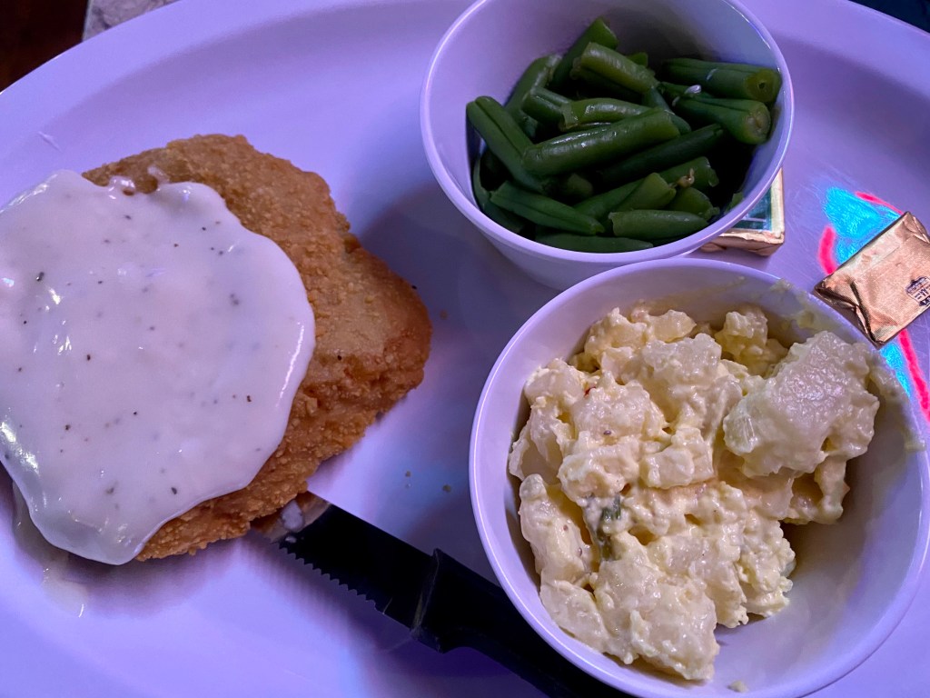 I ordered both the Chicken Fried Steak and two small pieces of Fried Chicken (the latter not pictured). The same breading on both, I liked the flavors well enough. But full honesty, it was not the best (of either) that I’ve had. The breading wasn’t the crispy texture I was hoping for – like the kind you’ll find at Gorats, Charleston’s or Jack & Mary’s (my personal fave). That being said, I still enjoyed it – even the next day after a quick reheat in the oven.