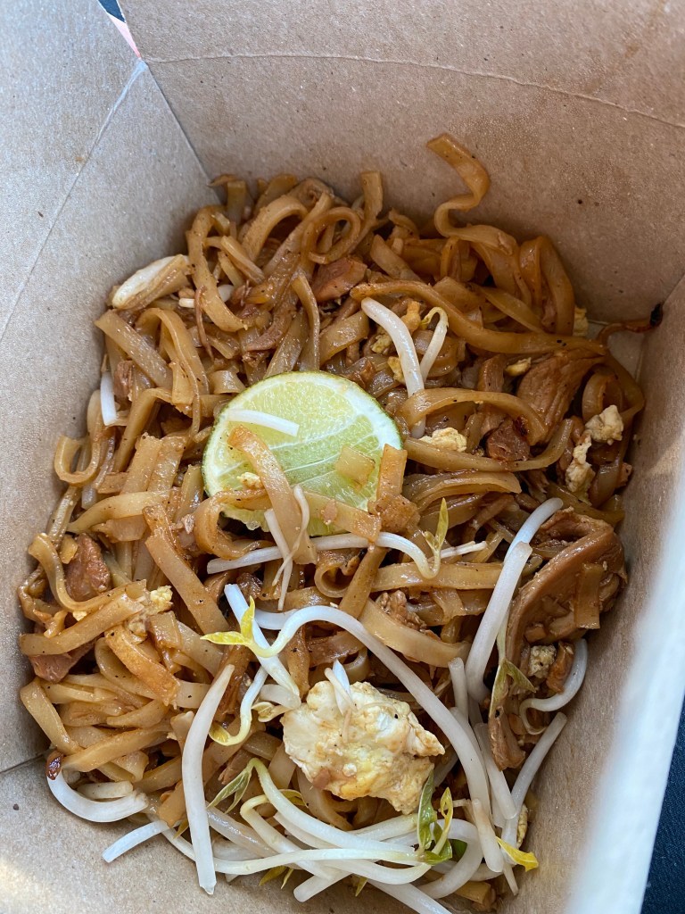 We almost skipped Pim’s Thai as our bellies were full and the sun was beaming down our backs. But we committed to the long line once we learned we could get it to-go.