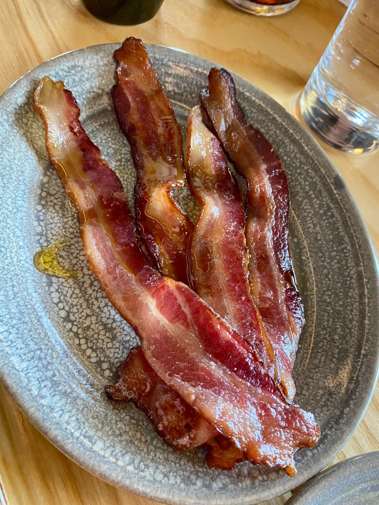 The bacon was cooked nearly perfect for our taste (we know, some like it darker/crispier). It had just a hint of the saffron maple syrup, but nothing overpowering.