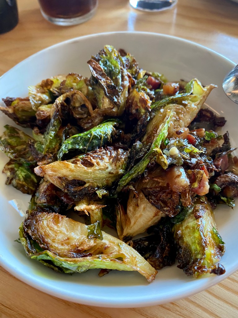 Neither of us are a fan of Brussels sprouts, but we’ll always give them a try … juuuust in case our taste buds changed. And even though these were surrounded in maple syrup, rosemary, bacon, and candied pecans – we didn’t love them. Personally, if I’m going to suffer through sprouts, they need to be crispy, crispy and then crispy some more. All the toppings were on point, though! That being said, don’t take our word for it – we’re sure sprout lovers would enjoy these.