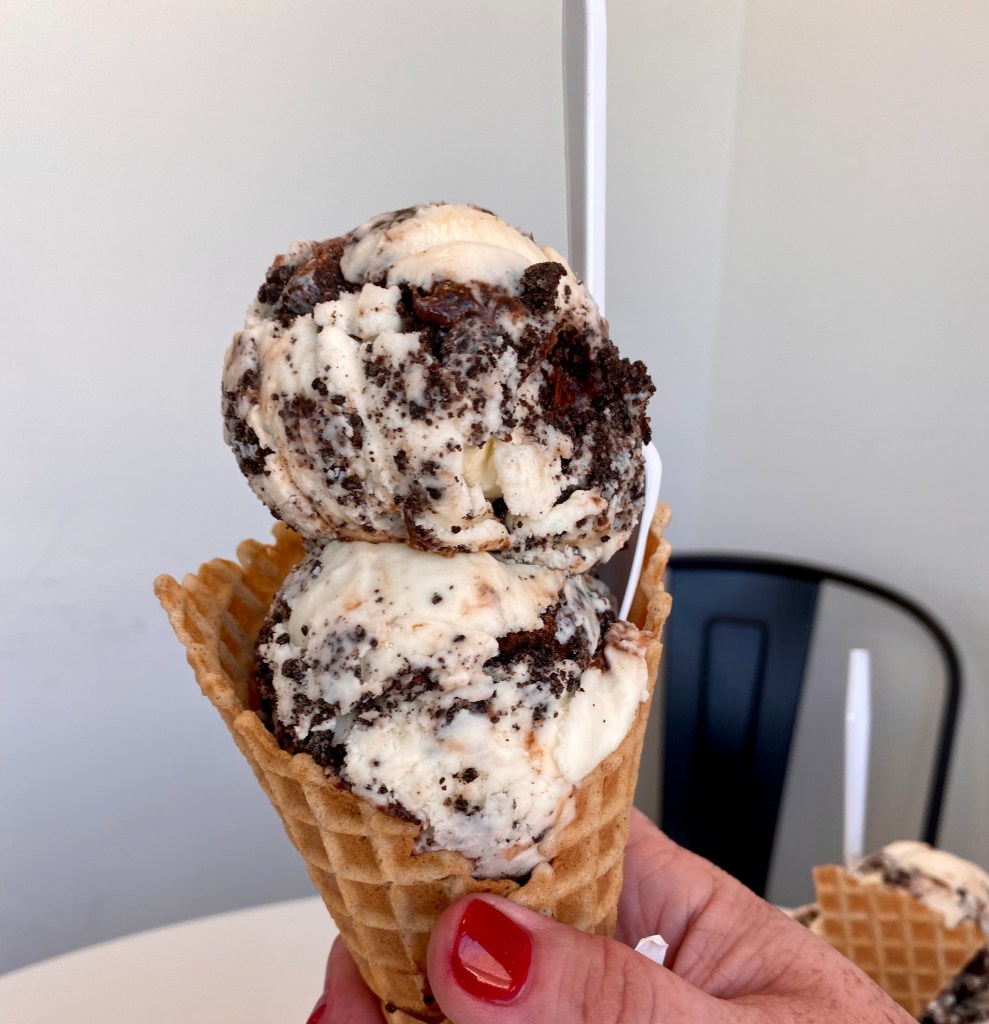 Sometimes you never know what ONE scoop looks like at different ice cream shops. Well, lesson learned. I asked for two scoops and couldn’t finish it. I should probably blame the tapas for that, but still. Considering I paid about $9 for my waffle cone and scoops, I wish I COULD have finished it. Delicious and completely stacked with flavor – I recommend this choice and 402 Creamery in general – so yum!