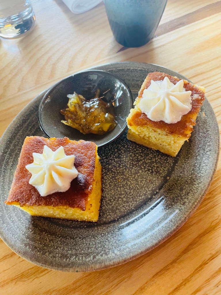 Assuming you know what fruit tastes like, we’ll jump right into these two squares of moist, fluffy starters. With a swipe of orange marmalade, the honey-sweet bites of cornbread took us all but 30 seconds to consume. Crispy on the top and bottom and soft in the middle – we think every brunch should start with perfectly warm cornbread like this.