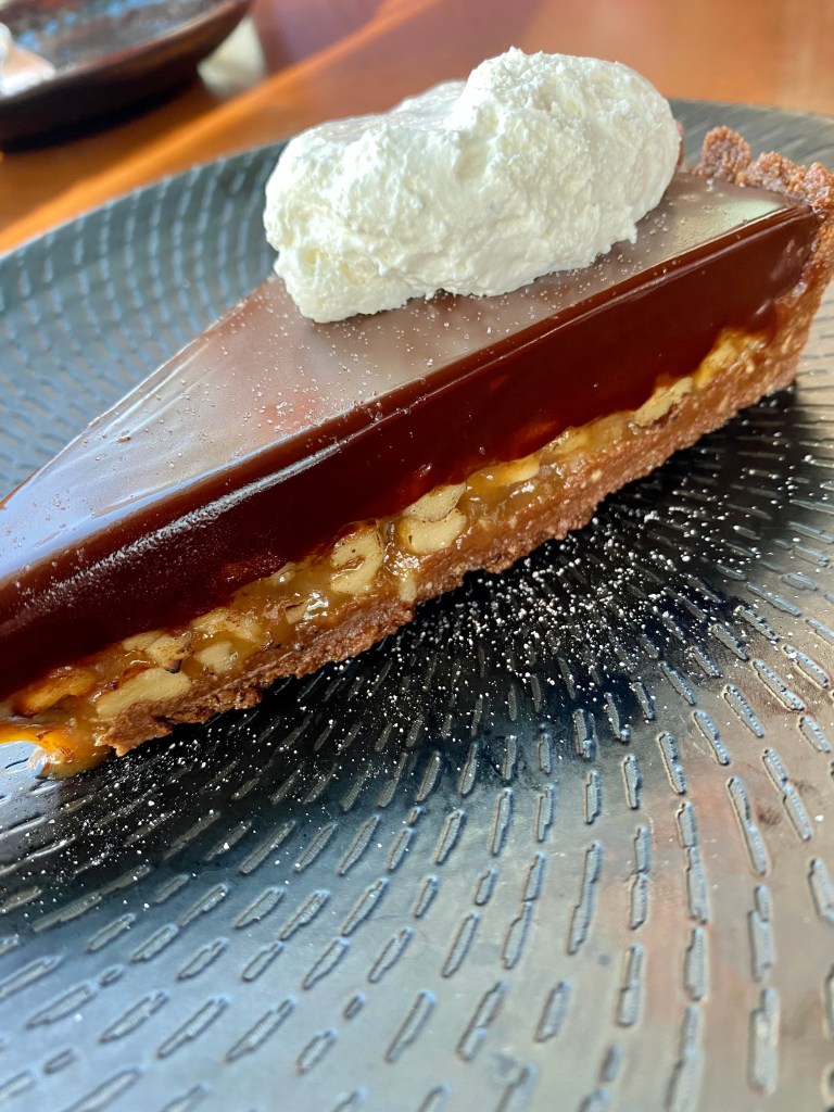 Chocolate Torte ($7) — Chocolate biscotti crust, walnut toffee filling, chocolate ganache tart