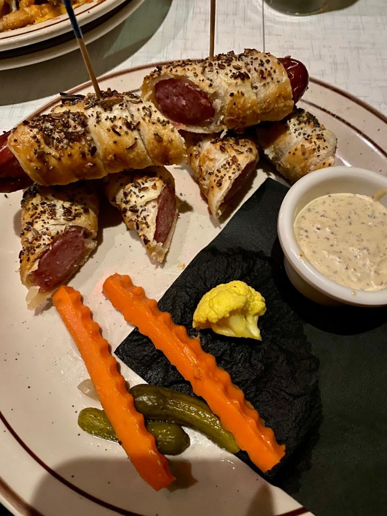 We don’t remember exactly why we threw these on the order, but it was a good choice. Save for the fact we were both getting full from our drinks and snacking on the rest of our options, these piggies were hot, flavorful and wrapped in deliciously flakey croissant blankets.