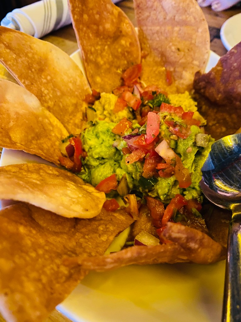 Dip Duo ($9) – artichoke and garbanzo puree, house guacamole, pico de gallo, corn chips