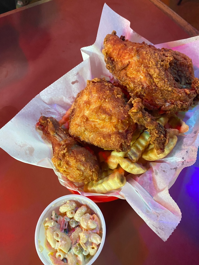 The chicken was incredibly hot and fresh, as were the fries. Our server offered a variety of dipping sauces – and the ranch, hot sauce and honey mustard were all solid choices. The only thing we weren’t impressed with was the side of macaroni salad. It’s a bit small and is just your standard mac salad.