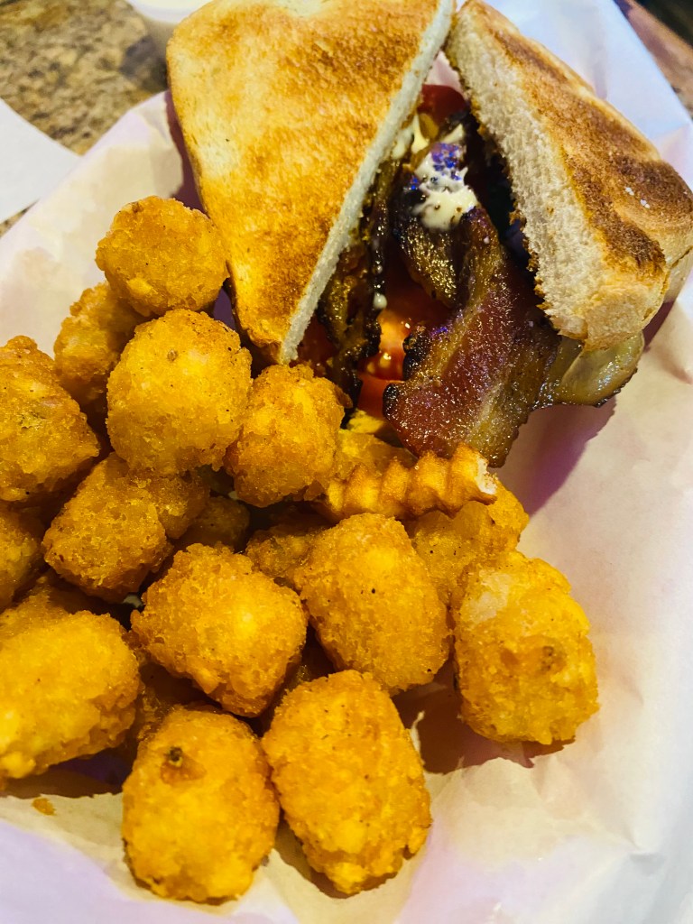 But we didn’t have too much time to be whelmed or underwhelmed because however long it took our server to walk from our table, back to the kitchen, and back to our table – we were being served our main course sandwiches. In hindsight, our onion rings were probably a victim of being ready and waiting a little too long. We gave this all a spoonful of forgiveness though: our server had told us it was her very first shift and the place was definitely buzzing with the dinner crowd.