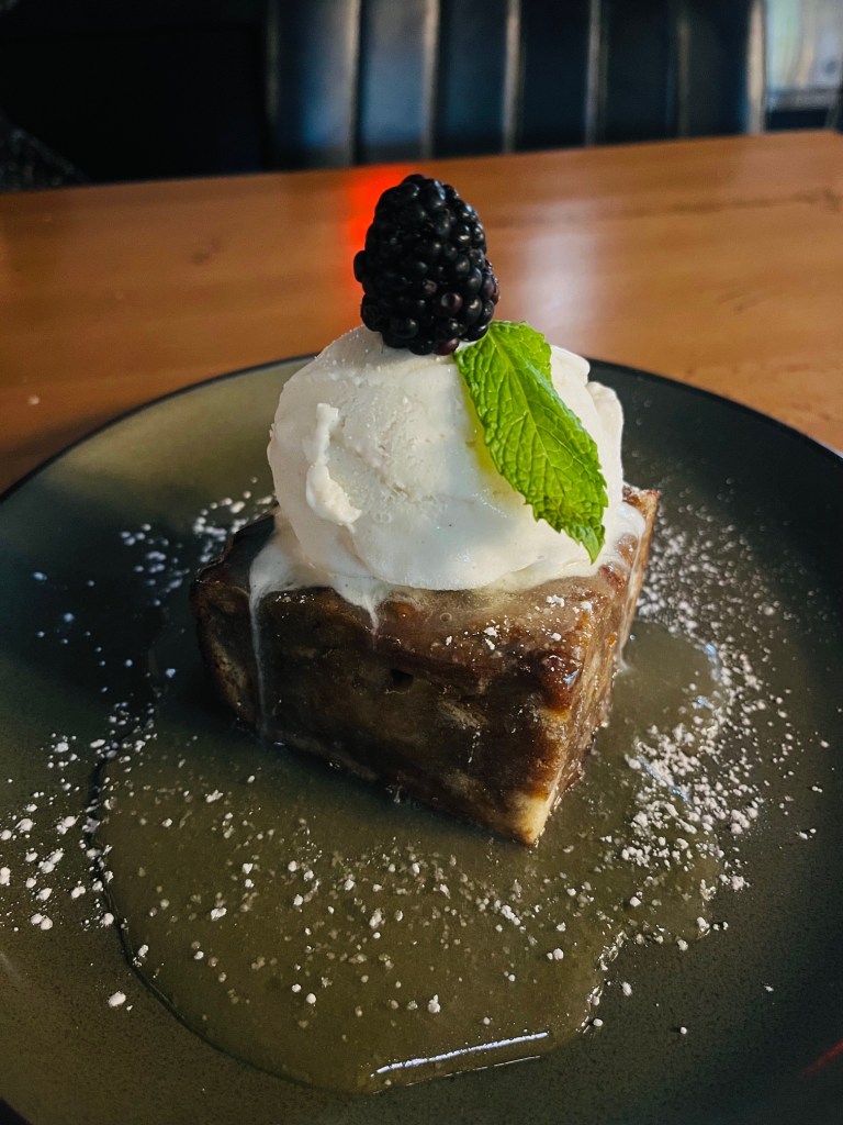 Whiskey Bread Pudding ($9) with Vanilla Ice Cream ($3) — Mulled spices, warm butter sauce