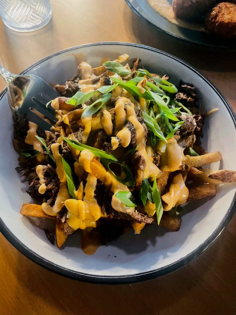 Short Rib Fries ($14) — Hand-cut fries, braised short rib, Ooh de lager beer Cheese, smoked paprika mayo