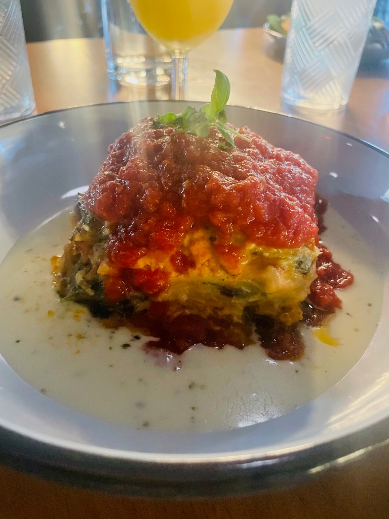 Smoked Chicken Lasagna ($22) — Ricotta, crimini mushroom spinach, oregano cream, four cheese blend