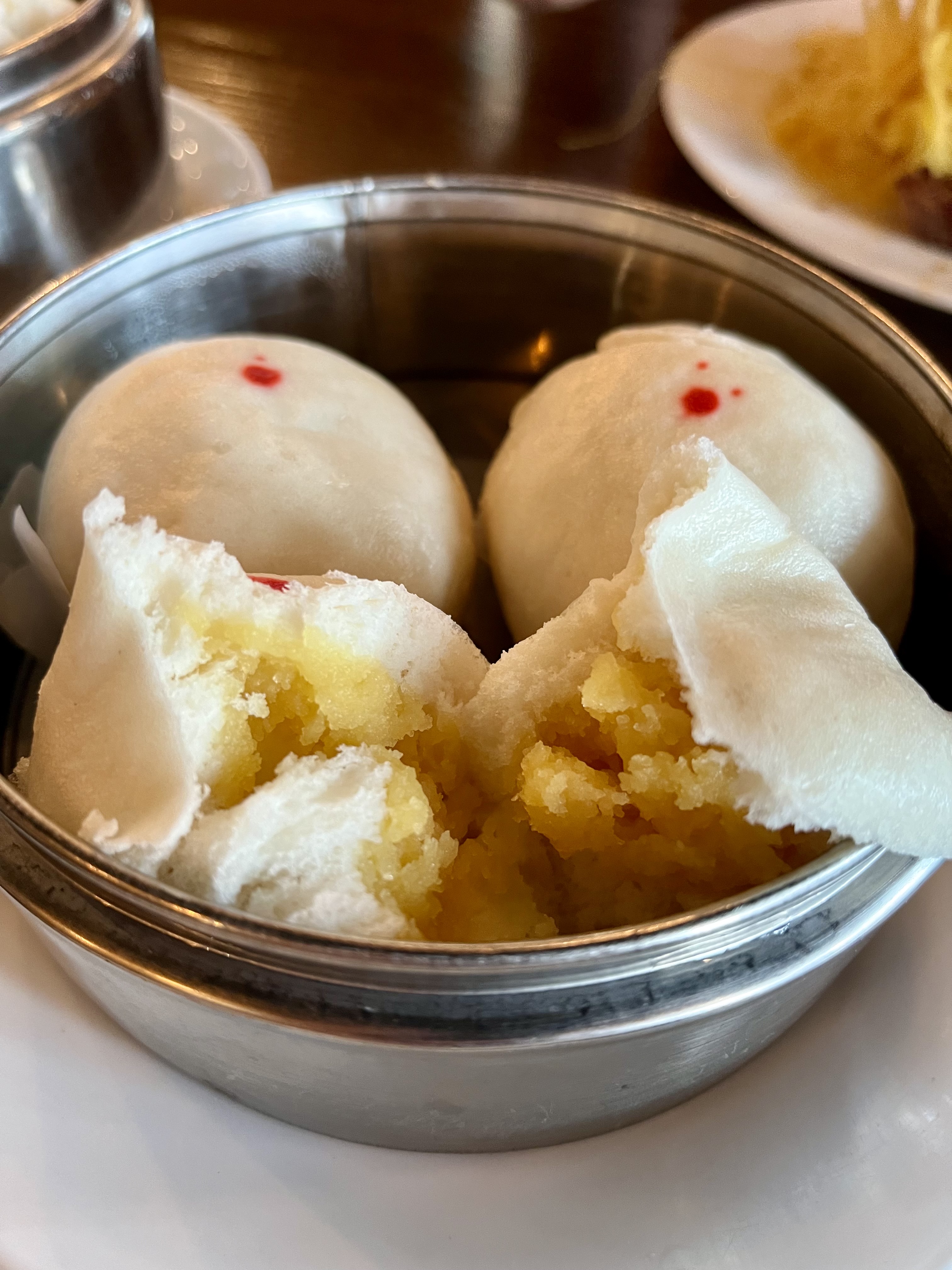 Our most-enjoyed flavor profile of the evening was the egg custard bun. The sweet, creamy custard makes this feel like a dessert. We’re not sure if it’s supposed to be, but we’ll both be finding ways to incorporate these into our life.