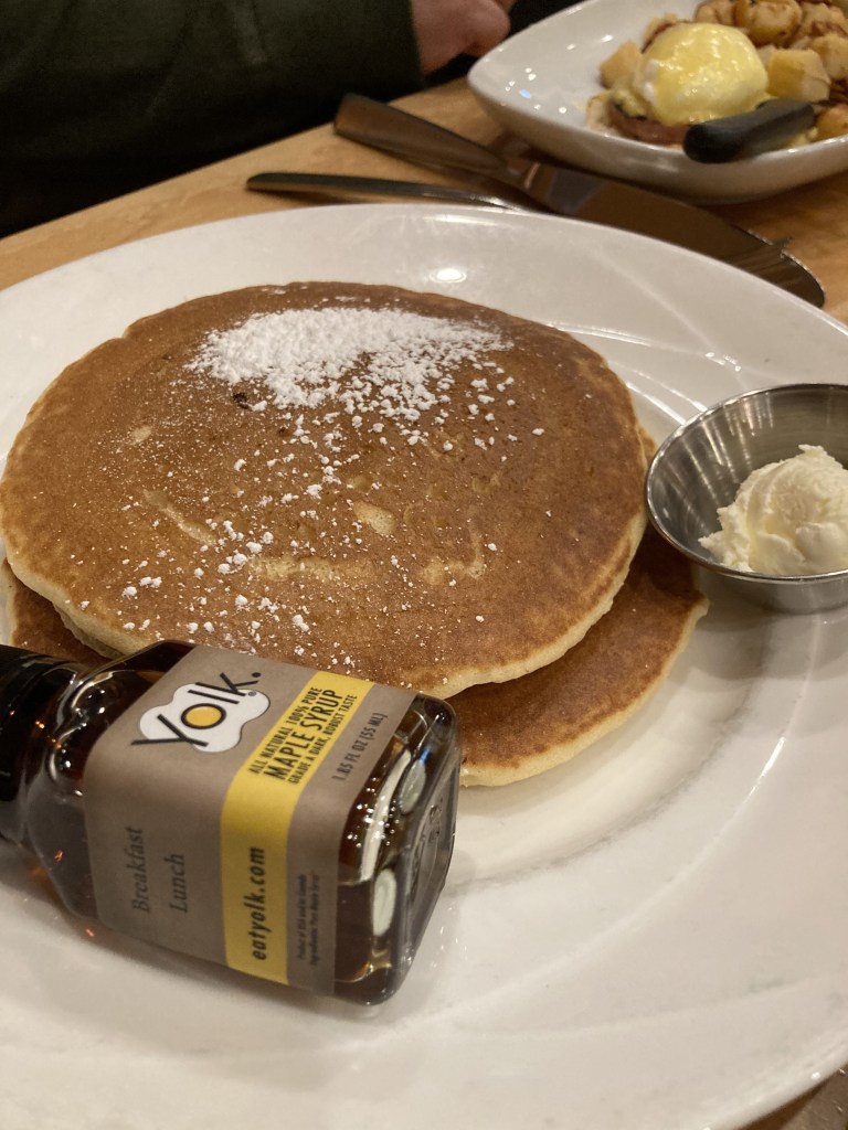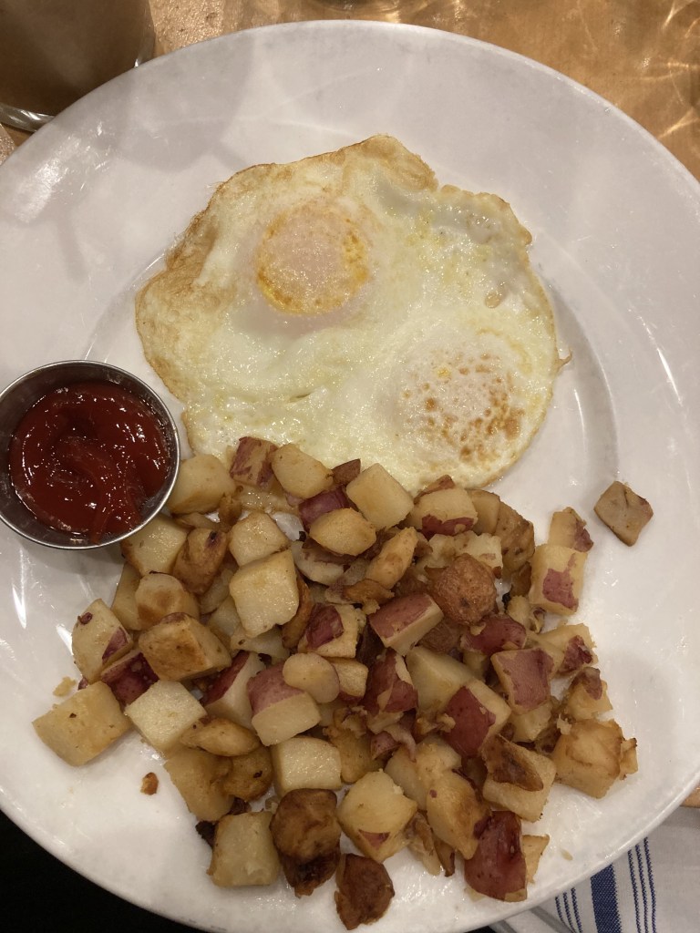 À la carte seasoned potatoes, two eggs & pancakes ($25)