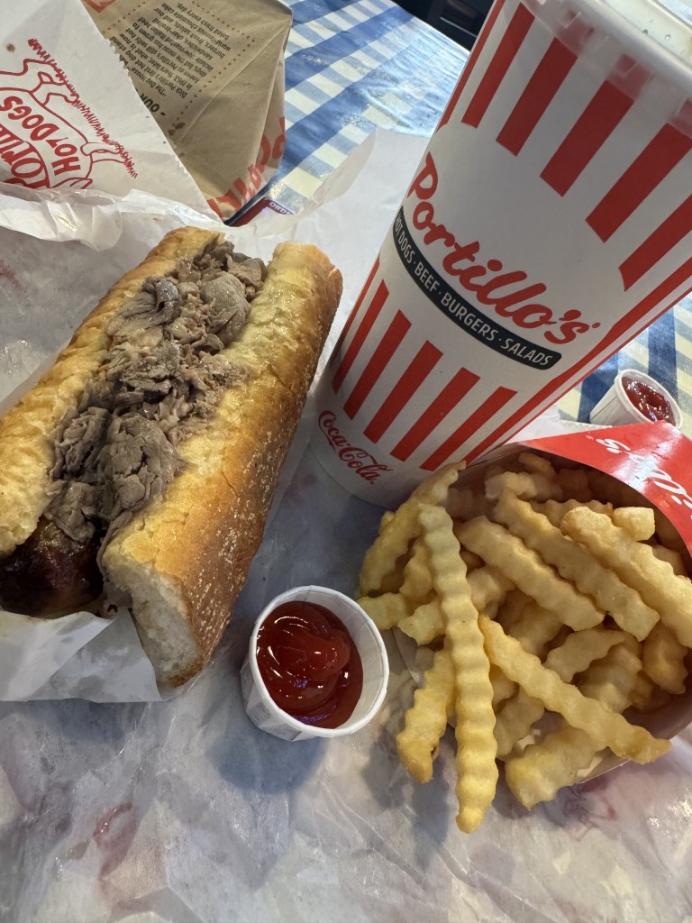 If you’ve ever visited Chicago, chances are you’ve stopped at a Portillo’s to experience their famous Italian beef or Chicago-style hot dogs. This being Jaclyn’s first real Chicago trip prompted Martha to insist we add it to the list. Not particularly excited about what she heard was a Chicago-styled hot dog, Jaclyn opted for the Italian beef, as did Sarah, and I got the Italian beef/sausage combo. We felt like we should have opted for a side of gravy (au jus) for extra moisture but didn’t quite have our bearings on how to order or what extra things to add on. Served with hot, crispy french fries – everything was yummy enough, but we wouldn’t proclaim it the best thing we ate on our trip. Jaclyn is content having checked it off her Chicago list, though.