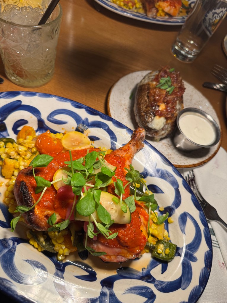 Half Roasted Chicken ($38) — Piri piri sauce, summer squash, cherry tomato, roasted corn, pickled cipollini onion