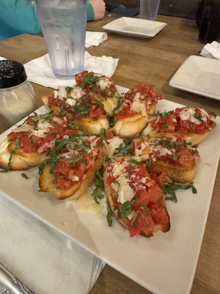 Lou’s Bruschetta ($11.79) — Roma tomatoes, fresh basil, olive oil and shaved parmesan on garlic rounds