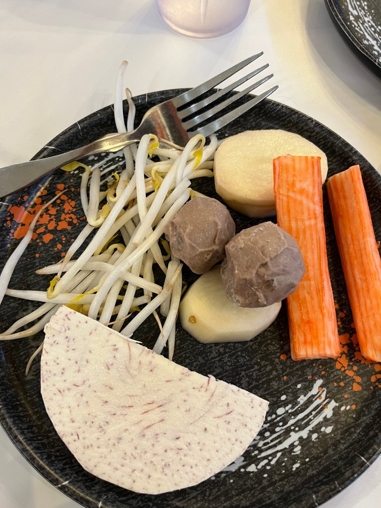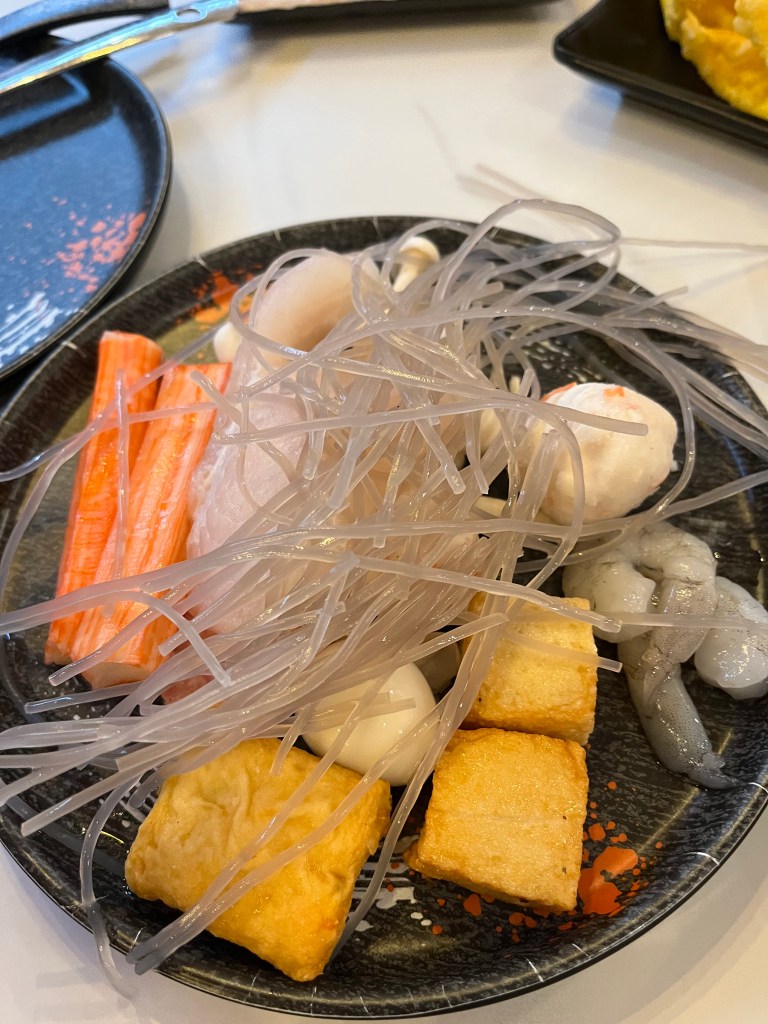 Rounding out your full hot pot experience, there is a cold buffet of hot pot mix-ins. From different types of noodles, to vegetables, crab sticks, crunchy tempura, meatballs, and so, so much more – there is no end to the customization possibilities a hot pot meal can offer.