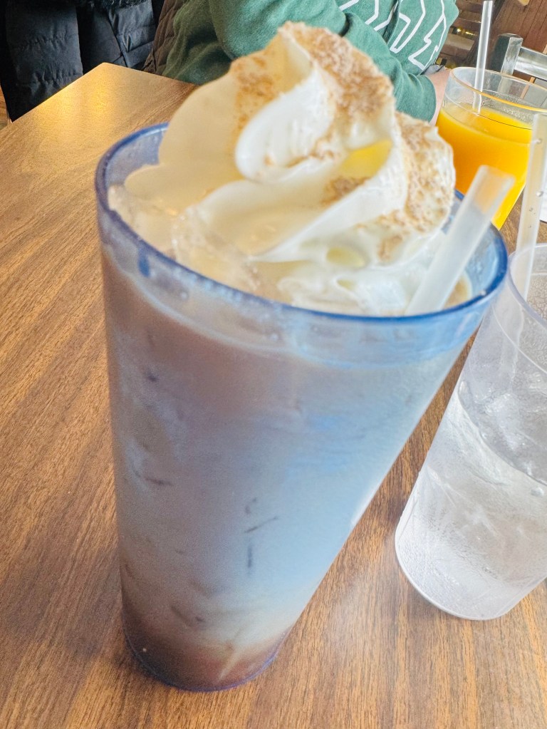 Forgetting for just a moment that the metro area was being blasted with sub-arctic wind and temps, Martha asked the server if they had an iced coffee. In hindsight – she doesn’t know if his quickly concealed surprise was because they don’t usually offer it or if no one else was wanting iced coffee on such a cold day. All the same, he said “I can make something up, no problem” and crafted a simple but delicious iced coffee with a dollop of whipped cream and a dusting of cinnamon. She drank every drop.
