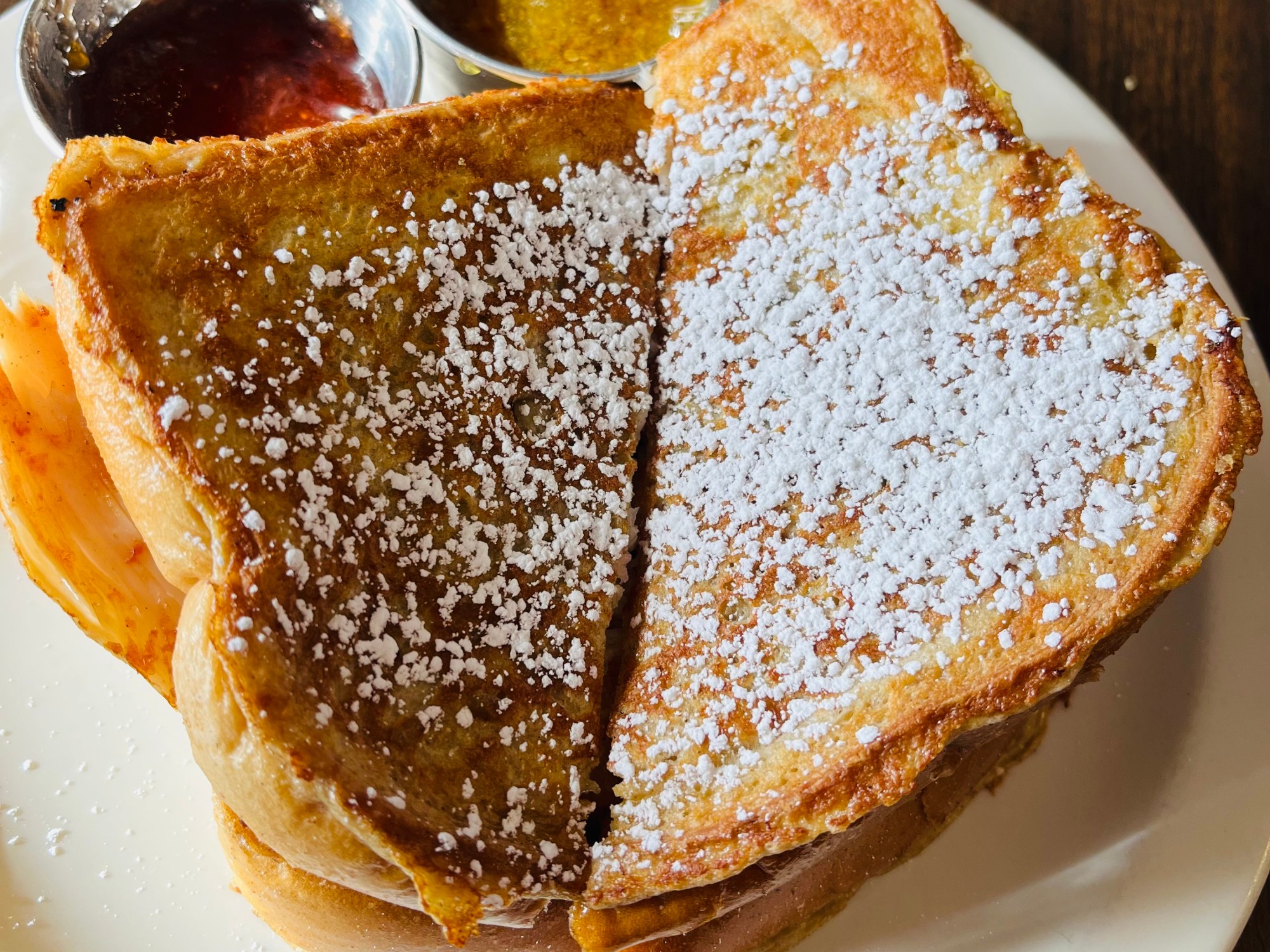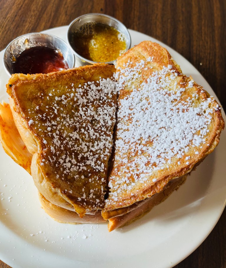 Monte Cristo ($14.50) – French toast sandwich with ham, turkey, smoked Gouda, house jam and house honey mustard