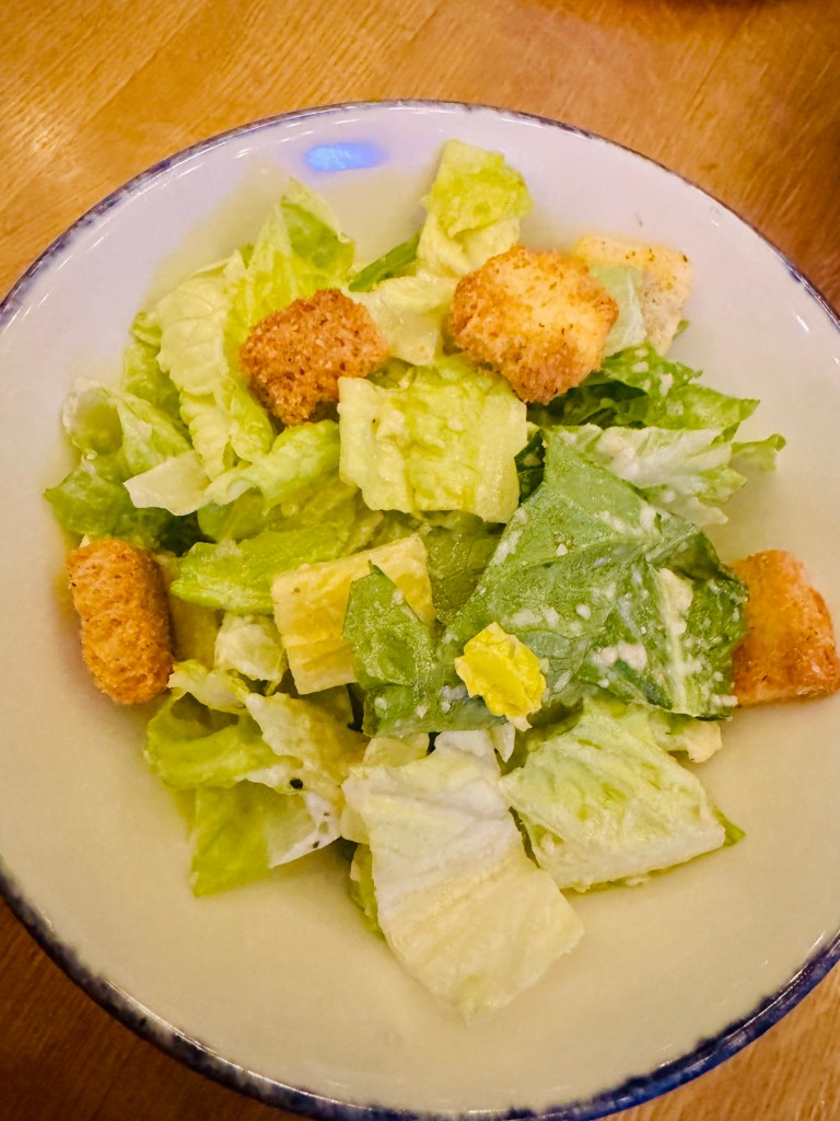 When it was my turn to order, I asked for a side of fries with my main course. And then I also added a side Caesar salad and said “and that can come out first, before my meal.” What I intended was just for the salad to come out first. What I got was both the fries and the salad. When I looked puzzled, Jaclyn said she interpreted me the same way the server did. So in that respect – I guess the staff at Tupelo’s follows your requests and instructions very well! The salad was straight forward, cool, crisp and the right size for a pre-meal salad. The first were my favorite kind of french fries – I think it’s a beer battered approach? That unique yum crunchy texture? They were hot and only would have tasted better…if they came out with my main course!